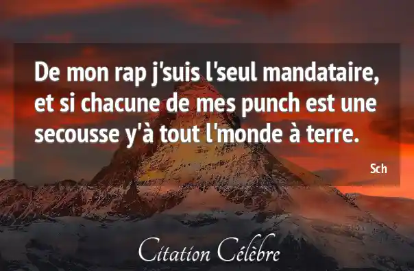 De mon rap j'suis l'seul mandataire, et si chacune de mes punch est une secousse y'à tout l'monde à terre.
