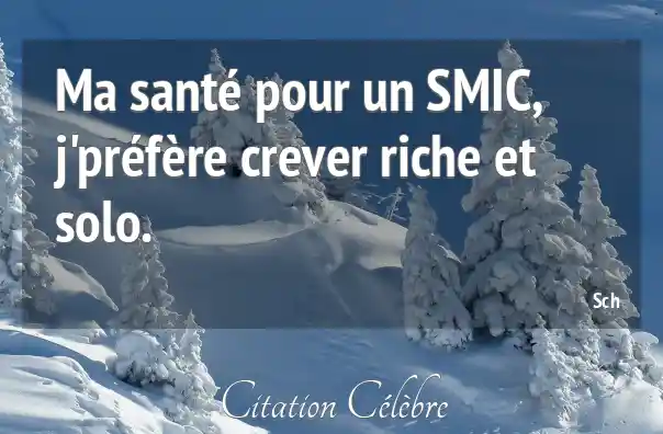 Ma santé pour un SMIC, j'préfère crever riche et solo.