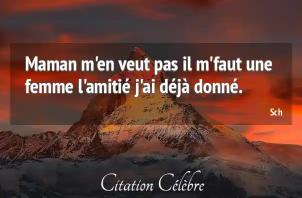 Maman m'en veut pas il m'faut une femme l'amitié j'ai déjà donné.