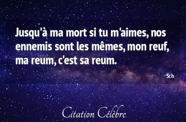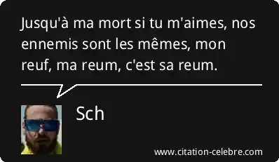 Jusqu'à ma mort si tu m'aimes, nos ennemis sont les mêmes, mon reuf, ma reum, c'est sa reum.