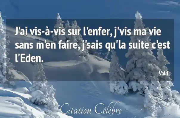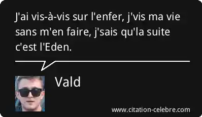 J'ai vis-à-vis sur l'enfer, j'vis ma vie sans m'en faire, j'sais qu'la suite c'est l'Eden.