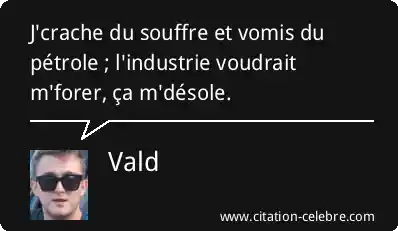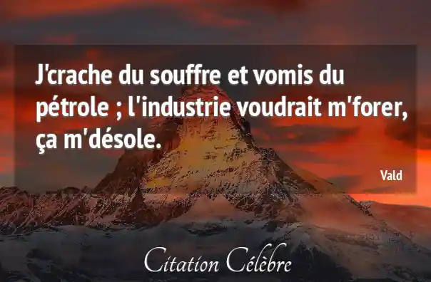 J'crache du souffre et vomis du pétrole ; l'industrie voudrait m'forer, ça m'désole.