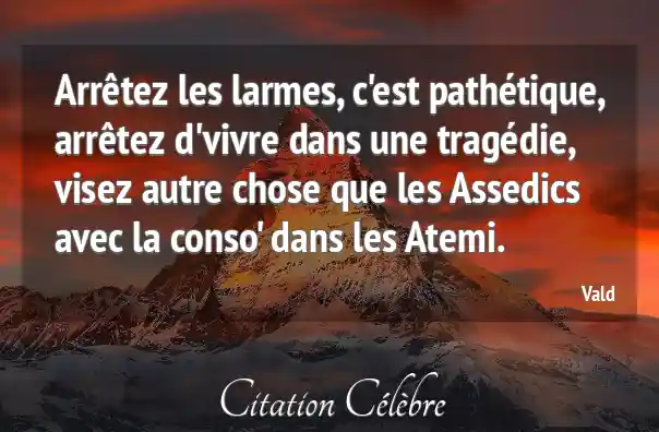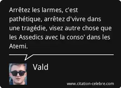 Arrêtez les larmes, c'est pathétique, arrêtez d'vivre dans une tragédie, visez autre chose que les Assedics avec la conso' dans les Atemi.