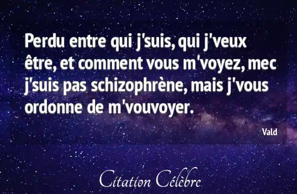 Perdu entre qui j'suis, qui j'veux être, et comment vous m'voyez, mec j'suis pas schizophrène, mais j'vous ordonne de m'vouvoyer.