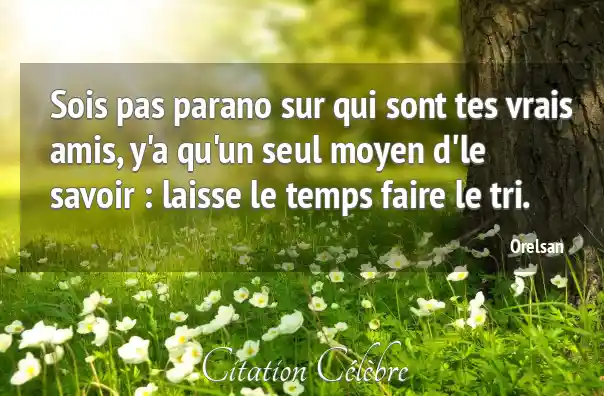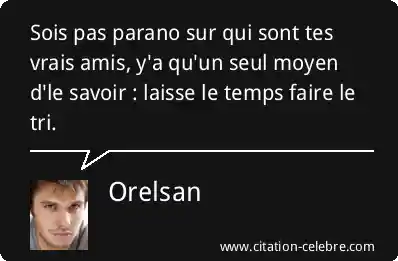 Sois pas parano sur qui sont tes vrais amis, y'a qu'un seul moyen d'le savoir : laisse le temps faire le tri.