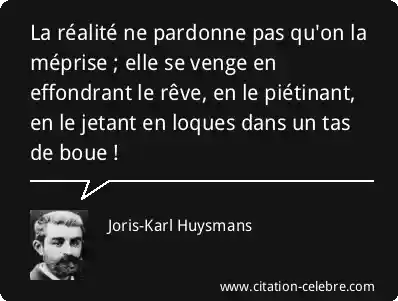 La réalité ne pardonne pas qu'on la méprise ; elle se venge en effondrant le rêve, en le piétinant, en le jetant en loques dans un tas de boue !