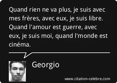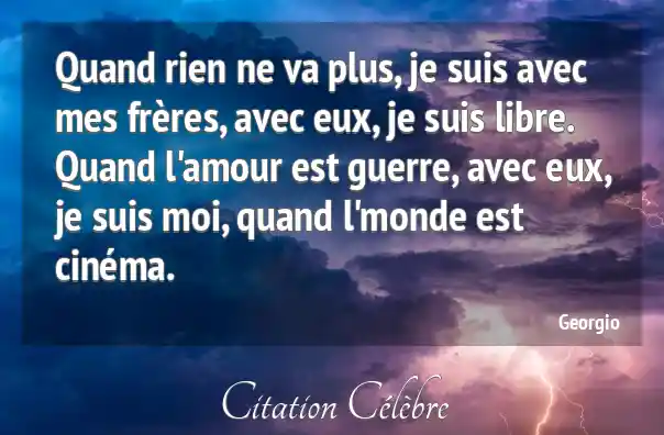 Quand rien ne va plus, je suis avec mes frères, avec eux, je suis libre. Quand l'amour est guerre, avec eux, je suis moi, quand l'monde est cinéma.