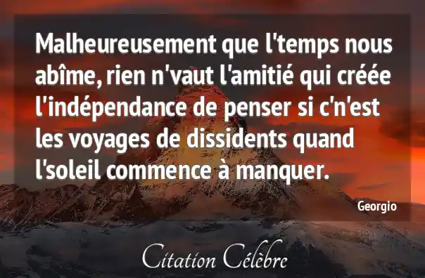 Malheureusement que l'temps nous abîme, rien n'vaut l'amitié qui créée l'indépendance de penser si c'n'est les voyages de dissidents quand l'soleil commence à manquer.