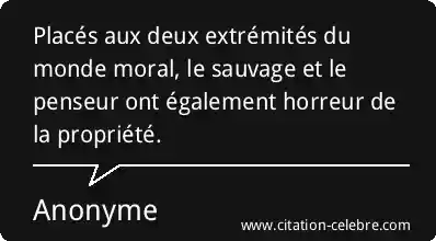 Placés aux deux extrémités du monde moral, le sauvage et le penseur ont également horreur de la propriété.