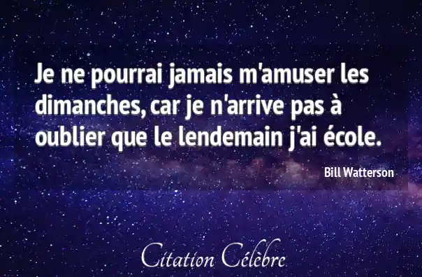 Je ne pourrai jamais m'amuser les dimanches, car je n'arrive pas à oublier que le lendemain j'ai école.