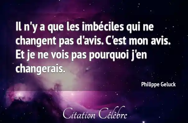 - Elle rappelle le proverbe originel « Il n'y a que les imbéciles qui ne changent pas d'avis », dont l'auteur est incertain, mais souvent attribué à des figures comme Winston Churchill (qui aurait dit une phrase similaire pour justifier un revirement politique).