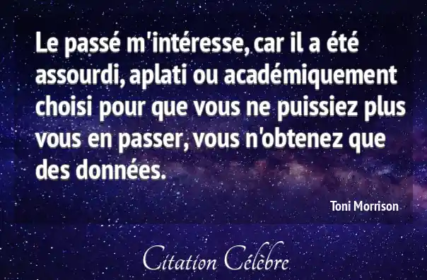 Le passé m'intéresse, car il a été assourdi, aplati ou académiquement choisi pour que vous ne puissiez plus vous en passer, vous n'obtenez que des données.