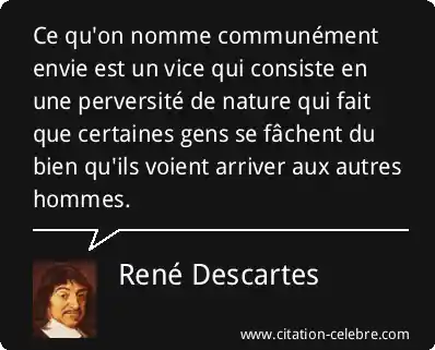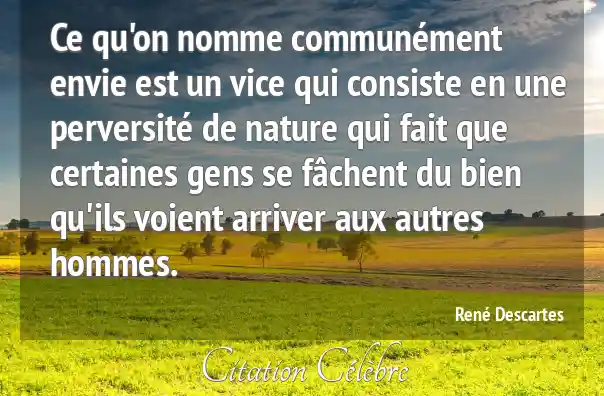 Ce qu'on nomme communément envie est un vice qui consiste en une perversité de nature qui fait que certaines gens se fâchent du bien qu'ils voient arriver aux autres hommes.