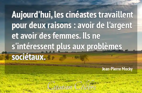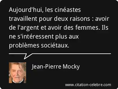 Aujourd'hui, les cinéastes travaillent pour deux raisons : avoir de l'argent et avoir des femmes. Ils ne s'intéressent plus aux problèmes sociétaux.