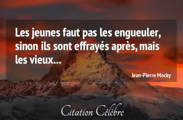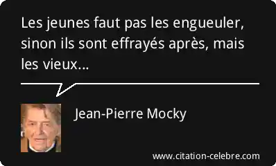 Citation Jean-Pierre Mocky apres : Les jeunes faut pas les engueuler, sinon ils sont effrayés...