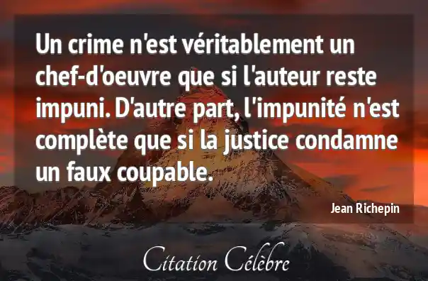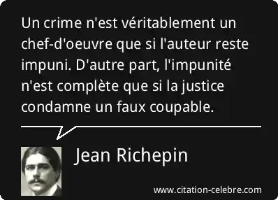 Un crime n'est véritablement un chef-d'oeuvre que si l'auteur reste impuni. D'autre part, l'impunité n'est complète que si la justice condamne un faux coupable.