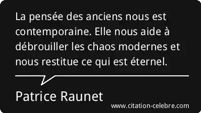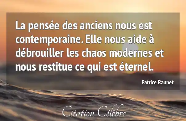 La pensée des anciens nous est contemporaine. Elle nous aide à débrouiller les chaos modernes et nous restitue ce qui est éternel.