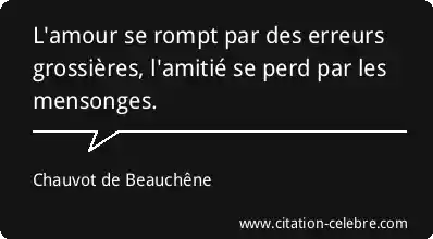 L'amour se rompt par des erreurs grossières, l'amitié se perd par les mensonges.