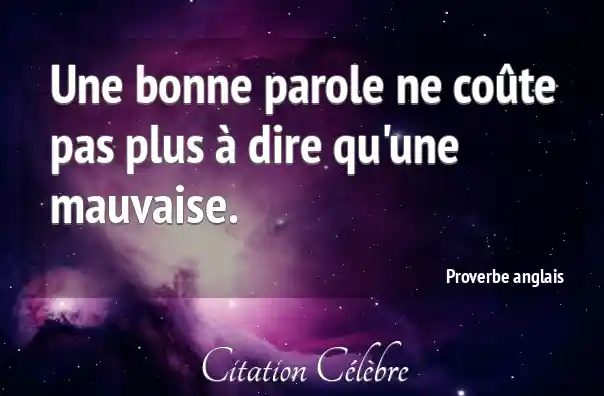 Une bonne parole ne coûte pas plus à dire qu'une mauvaise.