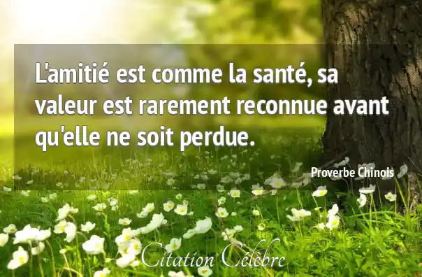 L'amitié est comme la santé, sa valeur est rarement reconnue avant qu'elle ne soit perdue.