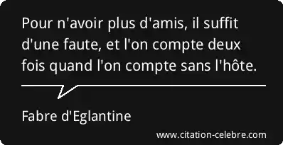 Pour n'avoir plus d'amis, il suffit d'une faute, et l'on compte deux fois quand l'on compte sans l'hôte.