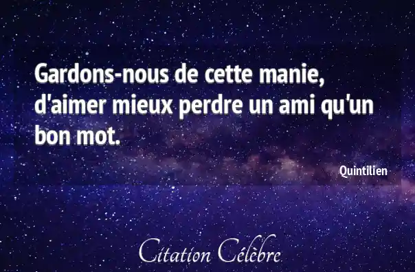 Gardons-nous de cette manie, d'aimer mieux perdre un ami qu'un bon mot.