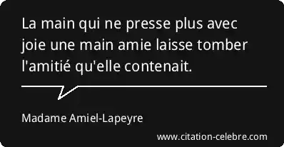 La main qui ne presse plus avec joie une main amie laisse tomber l'amitié qu'elle contenait.