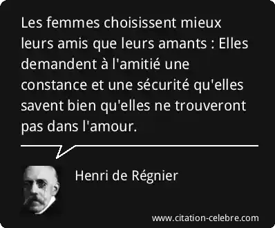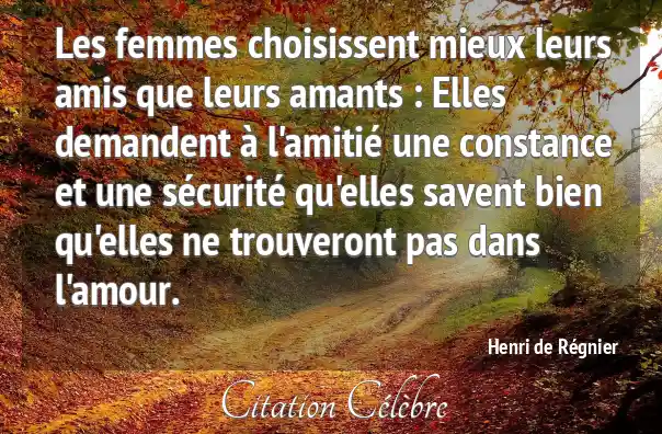 Les femmes choisissent mieux leurs amis que leurs amants : Elles demandent à l'amitié une constance et une sécurité qu'elles savent bien qu'elles ne trouveront pas dans l'amour.