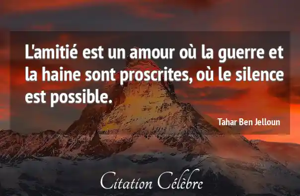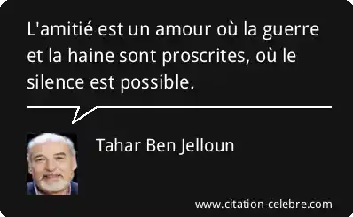 L'amitié est un amour où la guerre et la haine sont proscrites, où le silence est possible.