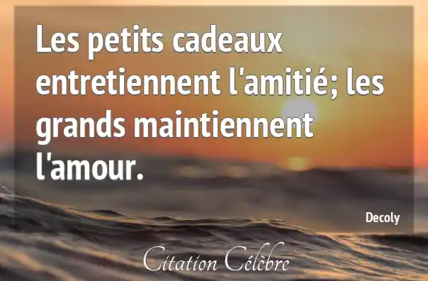 Les petits cadeaux entretiennent l'amitié; les grands maintiennent l'amour.