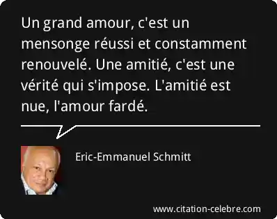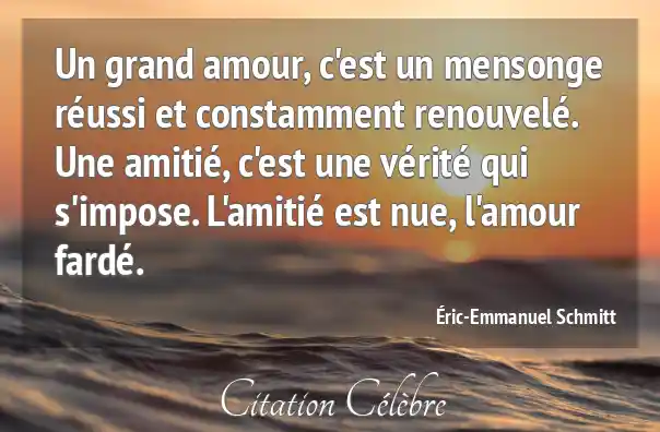 Un grand amour, c'est un mensonge réussi et constamment renouvelé. Une amitié, c'est une vérité qui s'impose. L'amitié est nue, l'amour fardé.