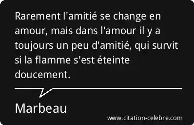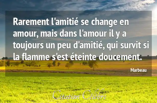 Rarement l'amitié se change en amour, mais dans l'amour il y a toujours un peu d'amitié, qui survit si la flamme s'est éteinte doucement.