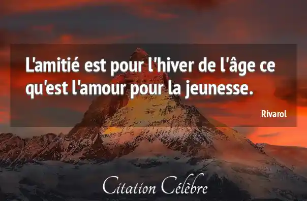 L'amitié est pour l'hiver de l'âge ce qu'est l'amour pour la jeunesse.