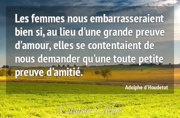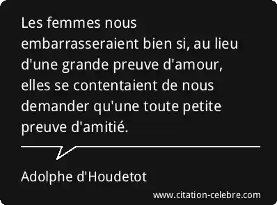 Les femmes nous embarrasseraient bien si, au lieu d'une grande preuve d'amour, elles se contentaient de nous demander qu'une toute petite preuve d'amitié.