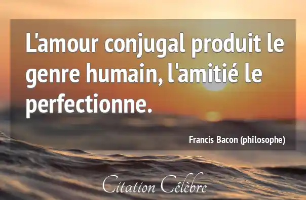 L'amour conjugal produit le genre humain, l'amitié le perfectionne.