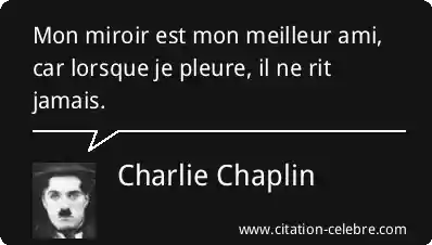 Citation Charlie Chaplin mon : Mon miroir est mon meilleur ami, car lorsque je pleure,...