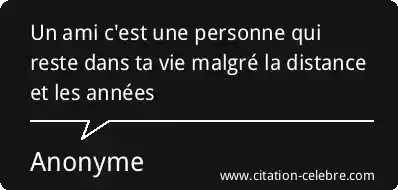 Un ami c'est une personne qui reste dans ta vie malgré la distance et les années