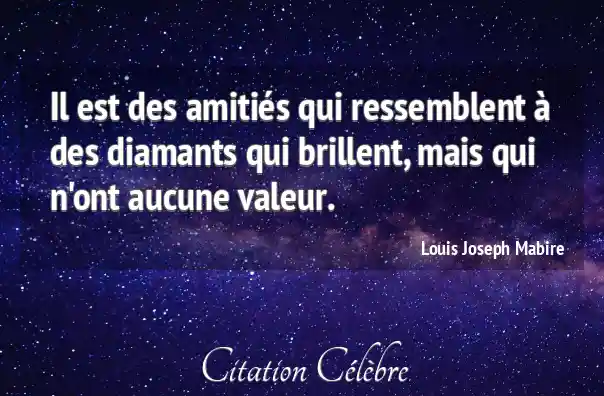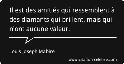 Citation Louis Joseph Mabire valeur : Il est des amitiés qui ressemblent à des diamants qui...