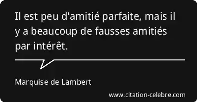 Citation Marquise de Lambert amitie : Il est peu d'amitié parfaite, mais il y a beaucoup...