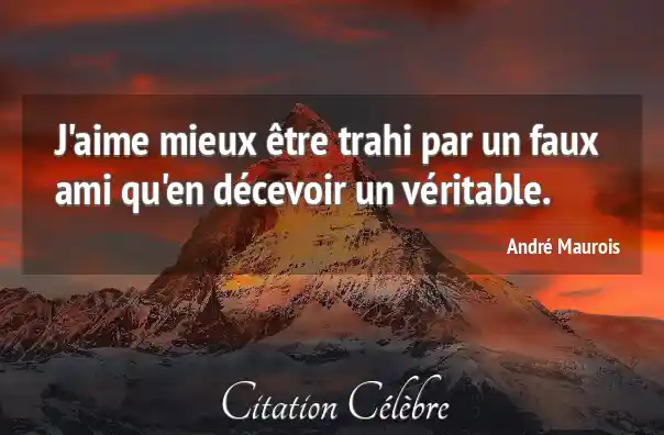 J'aime mieux être trahi par un faux ami qu'en décevoir un véritable.