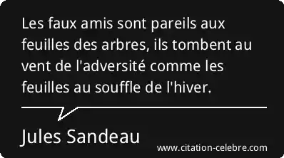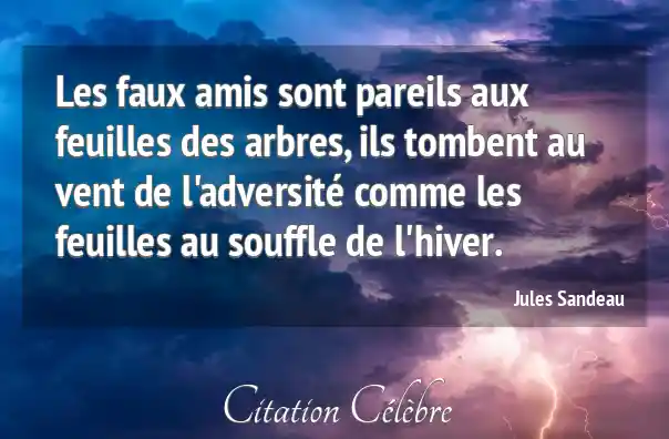 Les faux amis sont pareils aux feuilles des arbres, ils tombent au vent de l'adversité comme les feuilles au souffle de l'hiver.