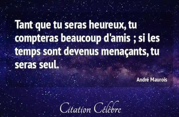 Tant que tu seras heureux, tu compteras beaucoup d'amis ; si les temps sont devenus menaçants, tu seras seul.