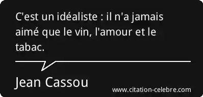 C'est un idéaliste : il n'a jamais aimé que le vin, l'amour et le tabac.