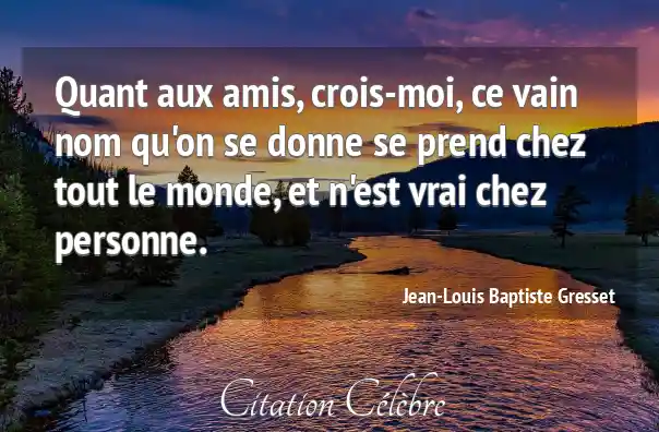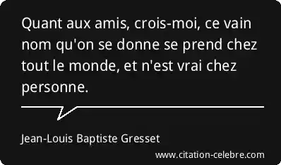 Quant aux amis, crois-moi, ce vain nom qu'on se donne se prend chez tout le monde, et n'est vrai chez personne.
