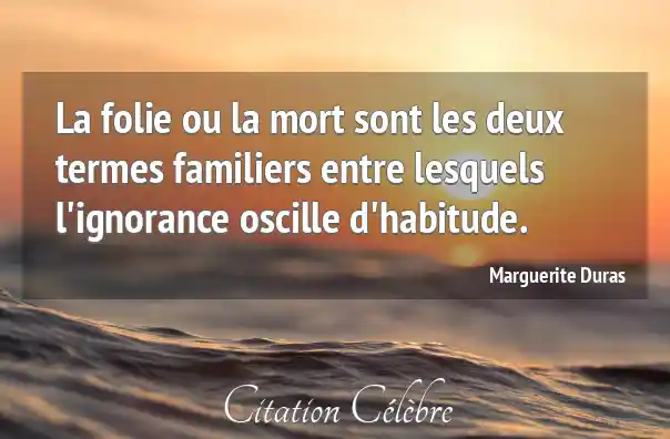 La folie ou la mort sont les deux termes familiers entre lesquels l'ignorance oscille d'habitude.
