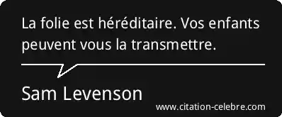 La folie est héréditaire. Vos enfants peuvent vous la transmettre.