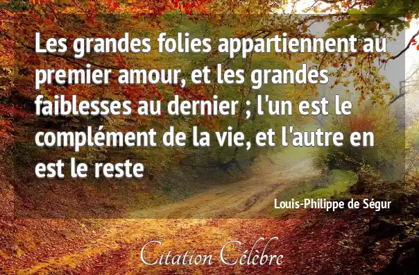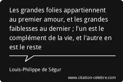 Les grandes folies appartiennent au premier amour, et les grandes faiblesses au dernier ; l'un est le complément de la vie, et l'autre en est le reste