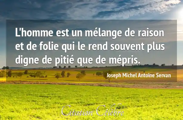 L'homme est un mélange de raison et de folie qui le rend souvent plus digne de pitié que de mépris.