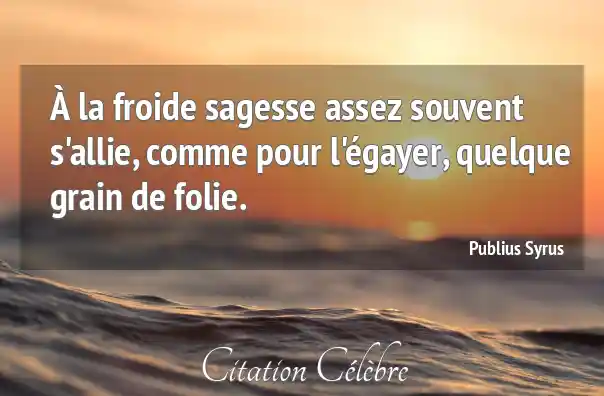 À la froide sagesse assez souvent s'allie, comme pour l'égayer, quelque grain de folie.