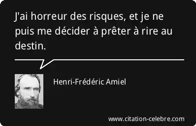 J'ai horreur des risques, et je ne puis me décider à prêter à rire au destin.